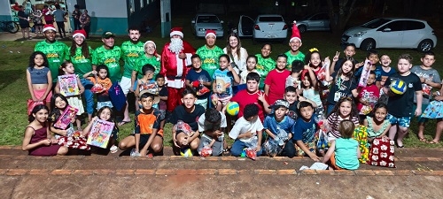 Dojo e Associação de Moradores da Vila Rural de Campo Mourão, com apoio dos universitários da Uniasselvi, entregaram na última sexta-feira, presentes para os alunos do projeto de caratê “Dojo no Esporte”.