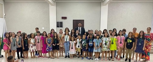 Goioerê – Quarenta alunos da rede municipal foram homenageados pela Câmara com a Medalha Rui Barbosa. São estudantes que se destacaram este ano. A homenagem é fruto da iniciativa do vereador Fábio Plaza.