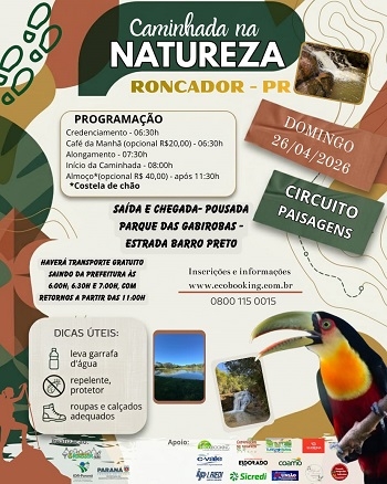 Roncador realiza no próximo domingo (8h) a sua Caminhada Internacional na Natureza.