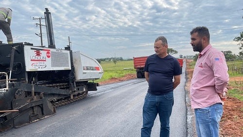 Goioerê - O prefeito Pedro Coelho acompanhou na nesta quinta-feira o andamento das obras de pavimentação asfáltica no primeiro trecho da zona rural do município, que liga a AABB à comunidade de Venda Branca.
