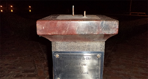 “Será que vândalos levaram o busto de Joaquim Teodoro de Oliveira do Parque do Lago? A foto foi feita neste domingo”. Guilherme Oliveira