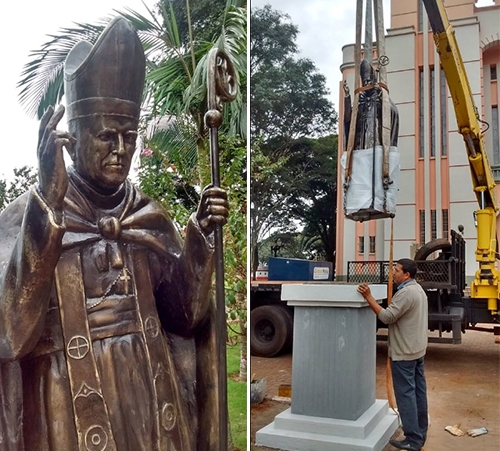 A estátua, em frente à Catedral, foi inaugurada após missa celebrada pelo bispo d. Javier Paredes.