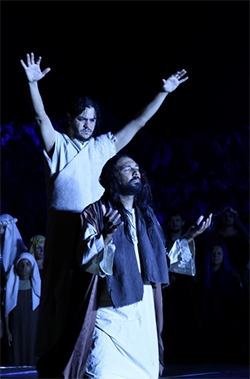 Um bom público, como sempre, compareceu à praça São José, nesta sexta-feira, para ver o Auto da Paixão de Cristo. E mais uma vez o pessoal da Fundacam se superou, emocionando o público. Foi a 14.a vez que o espetáculo foi encenado em Campo Mourão e pela quarta vez a direção foi de Vanuza Eloísa. Mais de 100 pessoas, entre atores, figurantes, músicos, dançarinos, artistas, técnicos, atiradores do Tiro de Guerra, alunos da Apae e voluntários fizeram parte do evento.