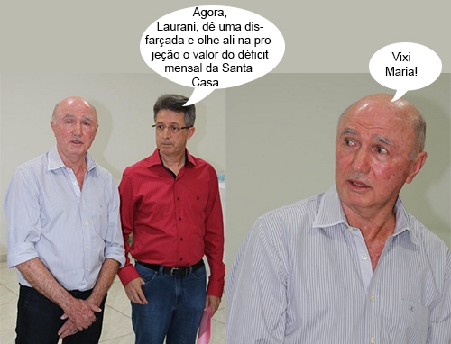 A posse da nova diretoria da Santa Casa de Campo Mourão foi quinta-feira passada, mas continua rendendo balãozinho aqui na Boca Santa. Pudera. Olha a cara de espanto do presidente José Carlos Laurani após receber o cargo do ex-presidente Luiz Marcos Mancebo Campos...