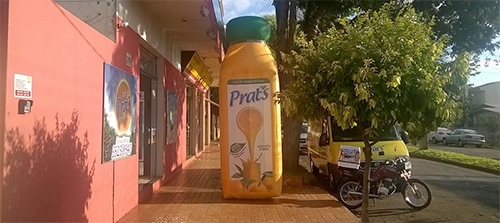 “O suco é gostoso e tem feito sucesso, mas não precisa deixar a garrafona da propaganda sobre a calçada, atrapalhando os pedestres. A foto é da av. Comendador Norberto Marcondes, perto da rua Santa Catarina”.