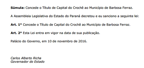 Agora é lei: Barbosa Ferraz é a “capital do crochê”.
