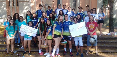 Olha aí os atletas que protestaram, nesta segunda-feira, em frente à casa da prefeita Regina Dubay. O objetivo deles é pressionar para que possam participar da fase final dos Jogos da Juventude do Paraná, no mês que vem, em Apucarana (Divisão B) e Curitiba (Divisão A).