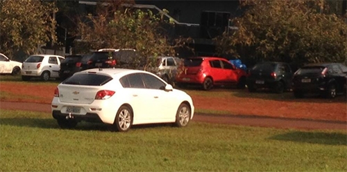 “Todos os dias vários carros ficam estacionados na área verde da entrada que leva ao aeroporto de Campo Mourão. Já nem tem mais grama no local. Começou com poucos carros, agora viro estacionamento”.