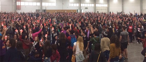 Um grupo de estudantes que participaram de ocupações de escolas provocou o colégio Marechal Rondon durante passeata.