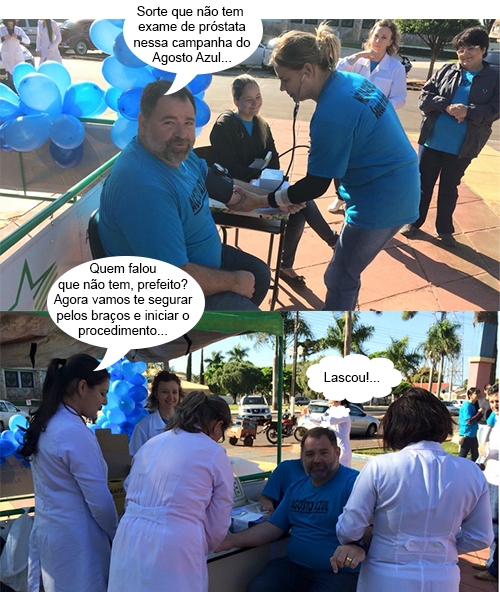 Os cliques são desta sexta-feira, em Araruna. A equipe da Secretaria de Saúde passou o dia todo em frente à Casa da Cultura fazendo exames preventivos dentro da campanha do Agosto Azul, que trabalha a saúde do homem. O prefeito Fabiano Antoniassi fez a sua parte. O vice-prefeito Claudemir Brambilla também.