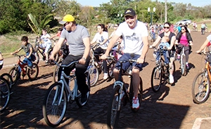 Prefeito na magrela - Sábado foi dia do Passeio Ciclístico da Família em Mamborê. A promoção da prefeitura aconteceu tanto na sede como na comunidade do Guarani. Até o prefeito Nei Calori foi lá dar suas pedaladas.
