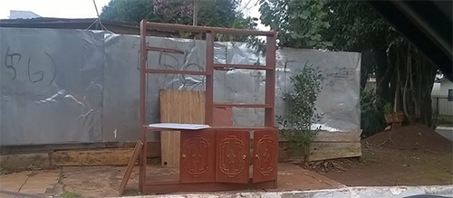 “Tem uma estante no meio da calçada. No meio da calçada tem uma estante. Quem quiser conferir é só chegar à rua Marechal do Ar Emílio Gomes, no jardim Copacabana”.