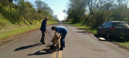 E não é que o prefeito de Barbosa Ferraz, Gilson Cassol, voltou para a rodovia que liga a cidade a Fênix para tapar mais um buraco? Nas redes sociais, ele disse que fez isso “atendendo pedidos”.