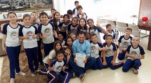 Professores e alunos da escola Professora Elisabete das Neves Teixeira visitaram o prefeito de Mamborê, Nei Calori. Foram apresentar o projeto "Mais que cultivar, também compartilhar", que consiste em construir uma horta em terreno anexo à escola. Esse imóvel pertence à prefeitura, daí a razão da visitinha. Calori foi ao local e autorizou o início da horta. E aí, será eu produz mais pepinos e abacaxis que o paço municipal?...
