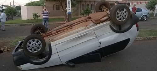 Até que fazia tempo que isso não acontecia, mas olha só como ficou o Fiat Uno após acidente nesta sexta-feira à tarde, no jardim Araucária. O veículo seguia pela rua Luciano Marmontel, quando um Gol invadiu a preferencial na rua Tipuanas e atingiu o Uno, que ficou assim, de rodas pra cima. Cá pra nós: carro capotado no perímetro urbano?!...