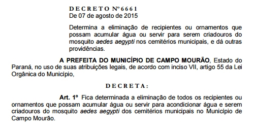 A partir de agora estão proibidos vasos de flores e outros ornamentos que acumulem água no Cemitério Municipal.