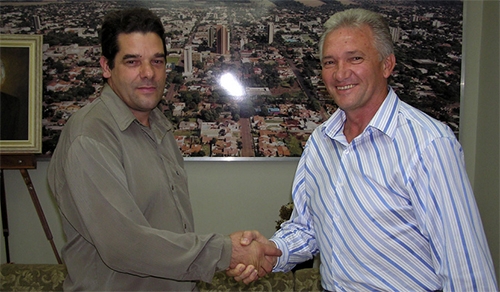 A foto é de arquivo, ainda no tempo em que Cláudio Pol (Luiziana) e Nelson Tureck (Campo Mourão) eram prefeitos, mas podia ser atual. É depois de desentendimentos feios durante a última eleição municipal, os dois compadres voltaram a fazer as pazes. O cachimbo da paz foi aceso na sexta-feira. Assim sendo, Tureck já pode voltar a chamar Pol de filho, como fazia antes.