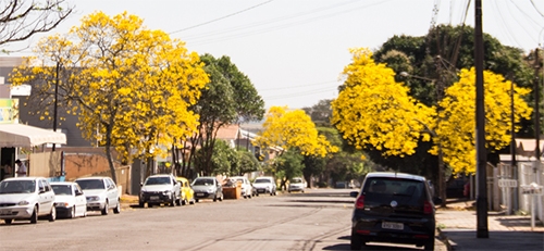 “A gente para na esquina para tirar uma foto dos belos ipês amarelos, todos floridos, dos dois lados da rua Interventor Manoel Ribas...