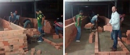 ...tem que participar! Olha o prefeito de Barbosa Ferraz, Gilson Cassol, aí, ajudando na montagem das churrasqueiras para o preparo do porco garantido. A festa do prato típico acontece neste domingo, dentro da programação que festeja os 55 anos do município.