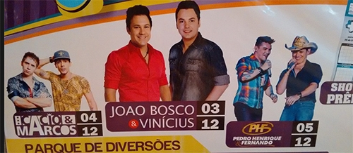Anote lá: João Bosco & Vinícius, dia 3; Cácio & Marcos dia 4 e Pedro Henrique & Fernando, dia 5.
