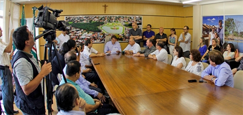 Repare a dupla em pé está de prontidão, como se alguma coisa pudesse a acontecer a qualquer momento. Isso dentro do gabinete da prefeita Regina Dubay (ela não estava presente). Ai-aiai-aiai! Imagine quando essa tocha chegar, como é que será...