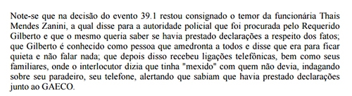 É que Thaís Zanini disse na fase de inquérito policial foi procurada pelo secretário que teria pedido que ela não falassse nada.