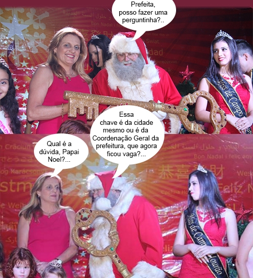Os cliques são desta terça-feira, durante a chegada oficial do Papai Noel a Campo Mourão. Como manda a tradição, o “bom velhinho” recebeu a chave da cidade das mãos da prefeita Regina Dubay. Agora a pergunta que não quer calar: o que o Papai Noel fez com a chave que recebe no ano anterior?...