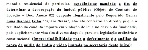 Nespolo pede liminar para que o imóvel seja desocupado e que haja ressarcimento pelo seu uso particular.