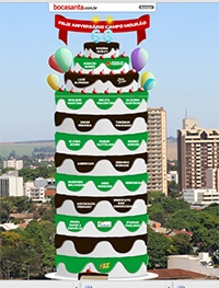 Como já virou tradição, todo aniversário de Campo Mourão tem o “Bolo da Boca”. Ele entrou no ar na véspera do aniversário e saiu na quinta-feira seguinte. Este Site agradece a todos que participaram. E atenção: o bolo já saiu do ar! Se ele continua aparecendo no seu computador, é preciso dar uma limpadinha no cache (arquivos de navegação).