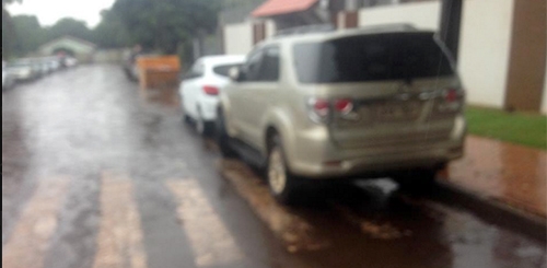 “Não sei quem estava dirigindo, mas carro de ‘deputado-secretário’ pode parar na faixa de pedestre? Foi nesta terça-feira, por volta das 17h30, em frente ao escritório político de Douglas Fabrício em Campo Mourão. A faixa existe por causa da creche que funciona do outro lado da rua”.
