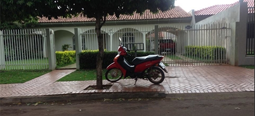 “Motocicleta estaciona sobre a calçada. O flagra desta quarta-feira foi feito na rua Londrina, em frente ao escritório político de Douglas Fabrício”.