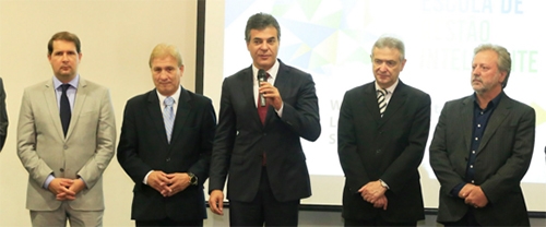 O governador Beto Richa lançou nesta quarta-feira a Escola de Gestão Inteligente, uma plataforma educacional desenvolvida pelo governo estadual para capacitar servidores municipais, principalmente os que atuam na área de gestão. E olha só, ali à direita, quem participou do evento: o prefeito de Juranda e presidente da Comcam, Bento Batista. Ah, quem pode, pode...