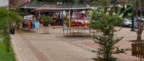 Sorveterias disputam clientes com enormes placas onde deveria ser espaço para as pessoas. Lojas colocam “tapetes” de cartolinas com as ofertas do dia. Tem propaganda em floreiras. Sem contar bancas de DVDs piratas e relógios, que são montadas em mesas improvisadas de caixa de papelão. Só falta vendedor de meia...