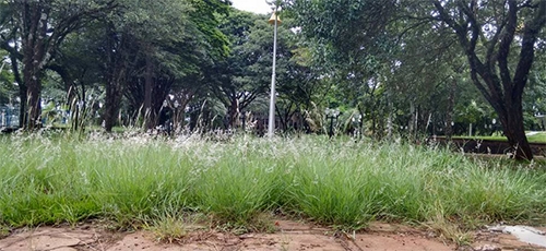 Acredite se quiser, mas a foto é da Praça do Fórum, no centro de Campo Mourão. O mato está sobre a calçada da av. Irmãos Pereira. Cobras, aranhas e lagartos agradecem...