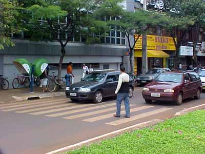 O que era para ser um item de segurança virou armadilha para os pedestres de Campo Mourão. Tudo por excesso de zelo entre motoristas e os próprios pedestres. A cena clicada por Boca Santa é vista a todo instante pela cidade: um carro pára na faixa de segurança para dar passagem ao pedestre, mas o outro veículo que vem ao lado não pára, não. Daí, dá nisso que a gente tá vendo. O pedestre tem que parar no meio da faixa. O motorista do carro que parou fica dando sinal para o pedestre passar, mas isso não pode ser feito porque o veículo da outra pista vem com tudo. Eis o dilema...