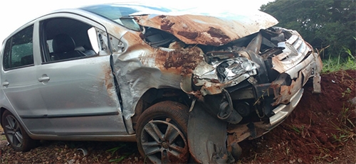 Fox com placa de Curitiba capatou na manhã desta quinta-feira na BR-158, perto de Peabiru. O motorista se feriu, mas foi visto fugindo para o meio de uma mata. Fugiu por quê? Porque o veículo estava recheado de droga. Eram 103 tabletes, num total de 58 kg de maconha. Tudo escondido nas laterais das portas e por dentro dos bancos.
