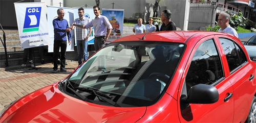 Teve entrega de carro 0 km, nesta quinta-feira, da promoção Compra Premiada. Dariel Antonio Spaki levou pra casa o Nissan New March. Foi o segundo veículo da promoção (o primeiro foi um Celta), que ainda vai sortear em março um VW Up. Também foram sorteados R$ 10 mi em vale-compras – 14 de R$ 500 e um de R$ 3 mil.