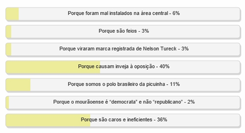 Em segundo, na cola, ficou “Porque são caros e ineficientes”, com 36%.