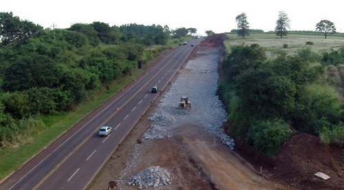 Olha aí a quantas anda a duplicação da rodovia entre Campo Mourão e Maringá. A foto é de Edecir Queiroz (Objetiva Video), feita através de drone. As obras estão perto de Engenheiro Beltrão. Nesta etapa, o asfalto será feito entre Floresta e Peabiru. Só depois é que virá o trecho Peabiru-Campo Mourão. Tudo feito pela Viapar, com dinheiro do pedágio criado há mais de 15 anos.