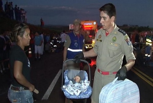 No acidente que mãe (53 anos) e filha (35) morreram, nesta quinta-feira à noite, na PR-317, perto de Ivailândia (Engenheiro Beltrão), uma cena comoveu a todos. Um bebê de um mês de vida saiu ileso. Ele estava no carro de Campo Mourão, o mesmo das duas vítimas. Na foto, a criança é socorrida pelo comandante do Corpo de Bombeiros, Leandro Calegari.