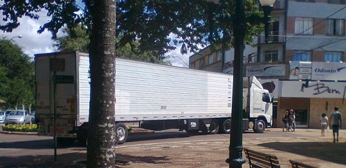 "Embora a Lei nº 2.882/2012 proíba o tráfego de caminhões de carga superior a 10 toneladas no perímetro central, flagrei essa imensa carreta circulando e atrapalhando o trânsito na av. Capitão Índio Bandeira com a tua Brasil. A inserção de placas proibitivas, conforme previsto no art. 4º da mesma lei, poderia evitar esse transtorno". Profª Vilma - vereadora