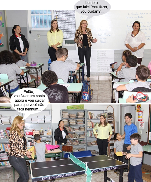 Os cliques são de terça-feira, quando a prefeita Regina Dubay visitou a escola municipal Bento Mossurunga, no jardim Copacabana. Ela estava com a secretária Karla Tureck (Educação) e conversou com professores e funcionários e ainda deu tempo para uma partidinha de "pingue-pongue" com a criançada.