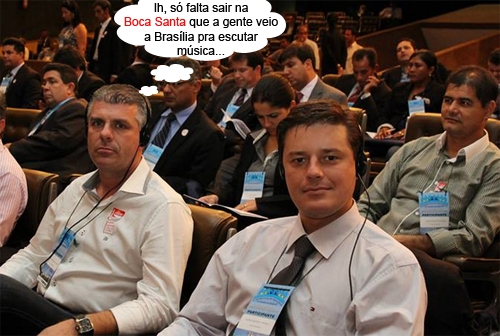 O clic é de Brasília, onde acontece o Encontro Nacional de Vereadores. A comitiva da Acamdoze inclui cinco "nobres edis" de Campo Mourão. Edílson Martins e Pedrinho Nespolo aparecem na foto usando fones de ouvidos a lá assembleia geral da ONU. Logo atrás está Jorge Pereira. Também foram à capital federal os vereadores Olivino Custódio e Toninho Machado.