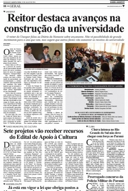 O reitor mourãoense da Unespar, Carlinhos Aleixo, foi destaque no jornal "Diário do Noroeste", de Paranavaí. Teve chamadona de capa e tudo para a matéria dele falando dos avanços da universidade. A reitoria, que ficará em Paranavaí, ainda não está pronta e Aleixo segue despachando de Curitiba. Agora, repare na manchete do jornal. O número de acidentes por lá caiu mais (37%) do que em Campo Mourão (20%). Ih, perdemos mais essa pra eles...