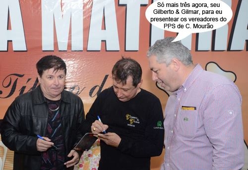 Olha aí mais um clic da Festa da Leitoa Mateira, que foi realizada domingo passado em Mamborê. O deputado Douglas Fabrício não ficou só pra ver o show com o dupla Gilberto & Gilmar, não. Fez pose para fotos e também não saiu sem um autógrafo. Ah, vá ver é pedido de correligionário, né?...