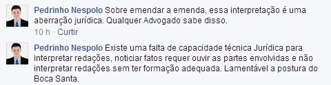 "Sobre emendar a emenda, essa interpretação é uma aberração jurídica. Qualquer Advogado sabe disso", escreveu.