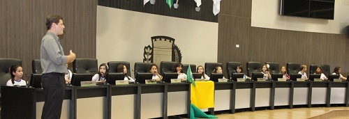Alunos da escola municipal Paulo 6º, do jardim Pio 12, estiveram nesta segunda-feira na Câmara de Vereadores. Um grupo fez a visita pela manhã e outro à tarde. Teve "tour" pela casa e até o direito de se sentar nas cadeiras dos "nobres edis". A criançada foi recebida pelo presidente Pedrinho Nespolo, que explicou como funciona o poder legislativo. E sem precisar entrar em detalhes das discussões em sessões mais acaloradas, né?...