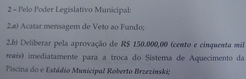 No documento, a primeira obrigação da Câmara era "acatar mensagem de Veto ao Fundo".