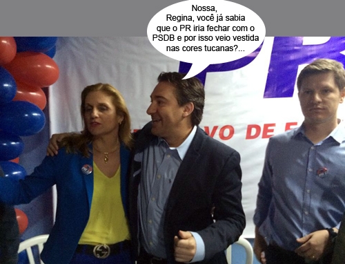 O clic é do último sábado, em Cascavel, durante convenção do PR, quando o partido confirmou apoio à reeleição do governador Beto Richa. A prefeita Regina Dubay esteve por lá e aparece na foto com o deputado federal Fernando Giacobo, que preside a sigla no Estado. Ela está liberada para apoiar a petista Gleisi Hoffmann. Agora, cá pra nós, por via das dúvidas, foi usando azul e amarelo, que são as cores do partido do tucanos. Ah, numa dessas...