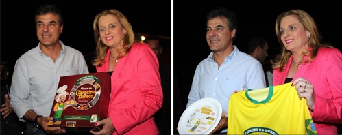 O governador Beto Richa tá tão animado com a Festa do Carneiro no Buraco que nem esperou o domingo para chegar a Campo Mourão. No sábado à noite já estava no Parque de Exposições. Ele jantou no Recanto do Criador, onde foi homenageado pelo Sindicato Rural. A prefeita Regina Dubay aproveitou para entregar o kit da festa ao governador, que abriu ali a caixa ali mesmo. Ah, vai que era uma pegadinha de eleitora da Gleisi, né?...